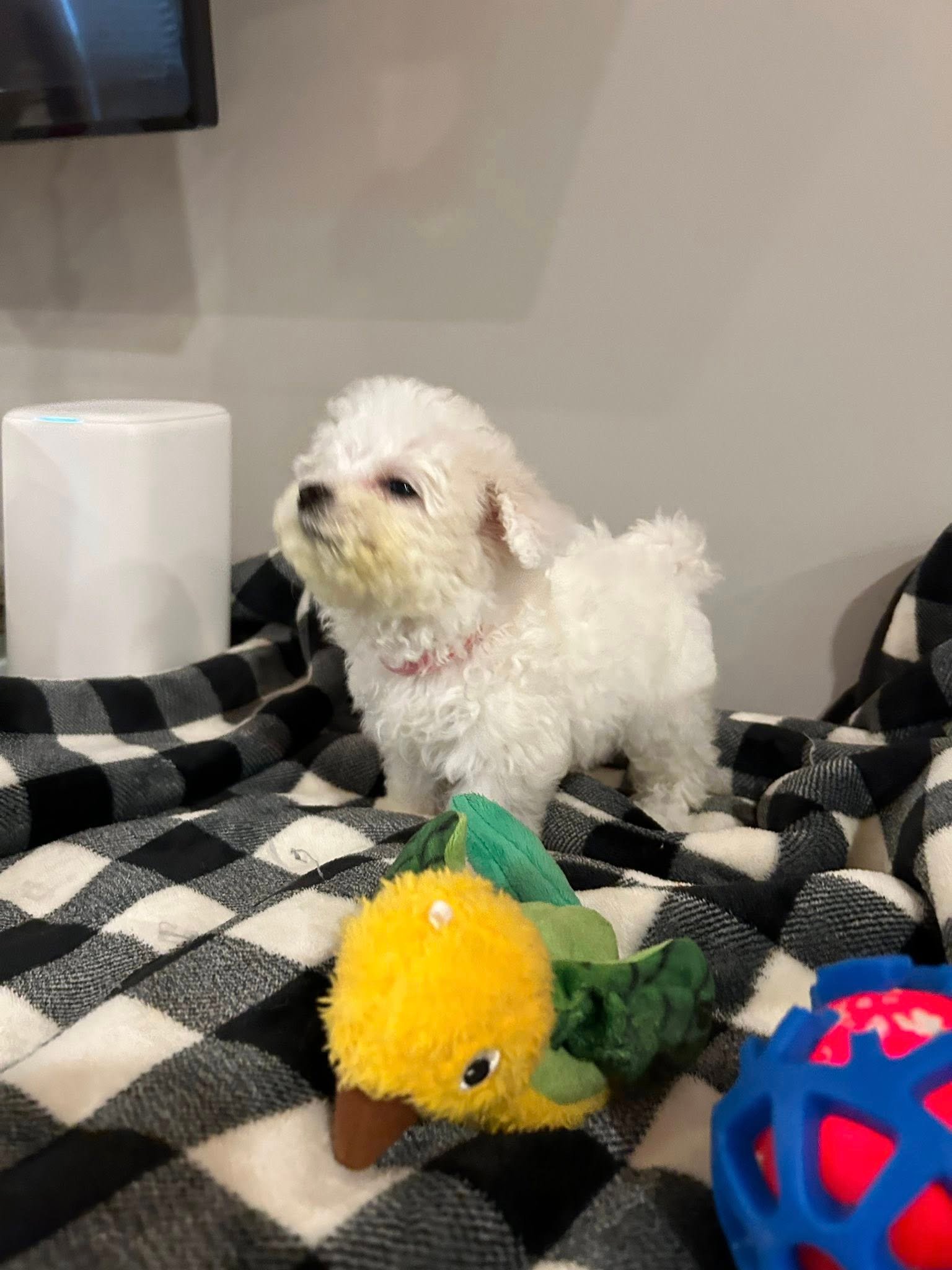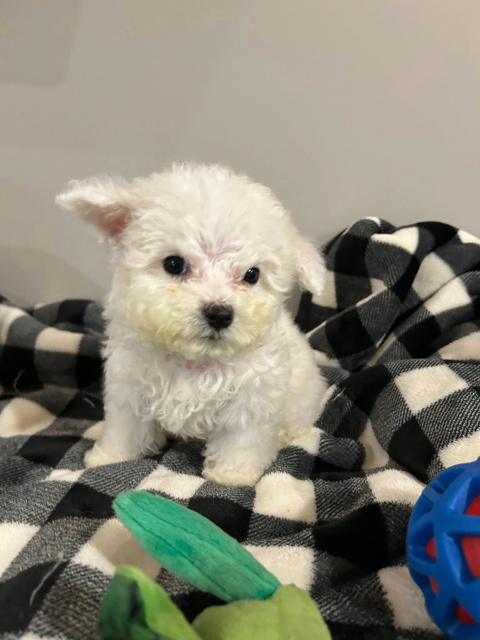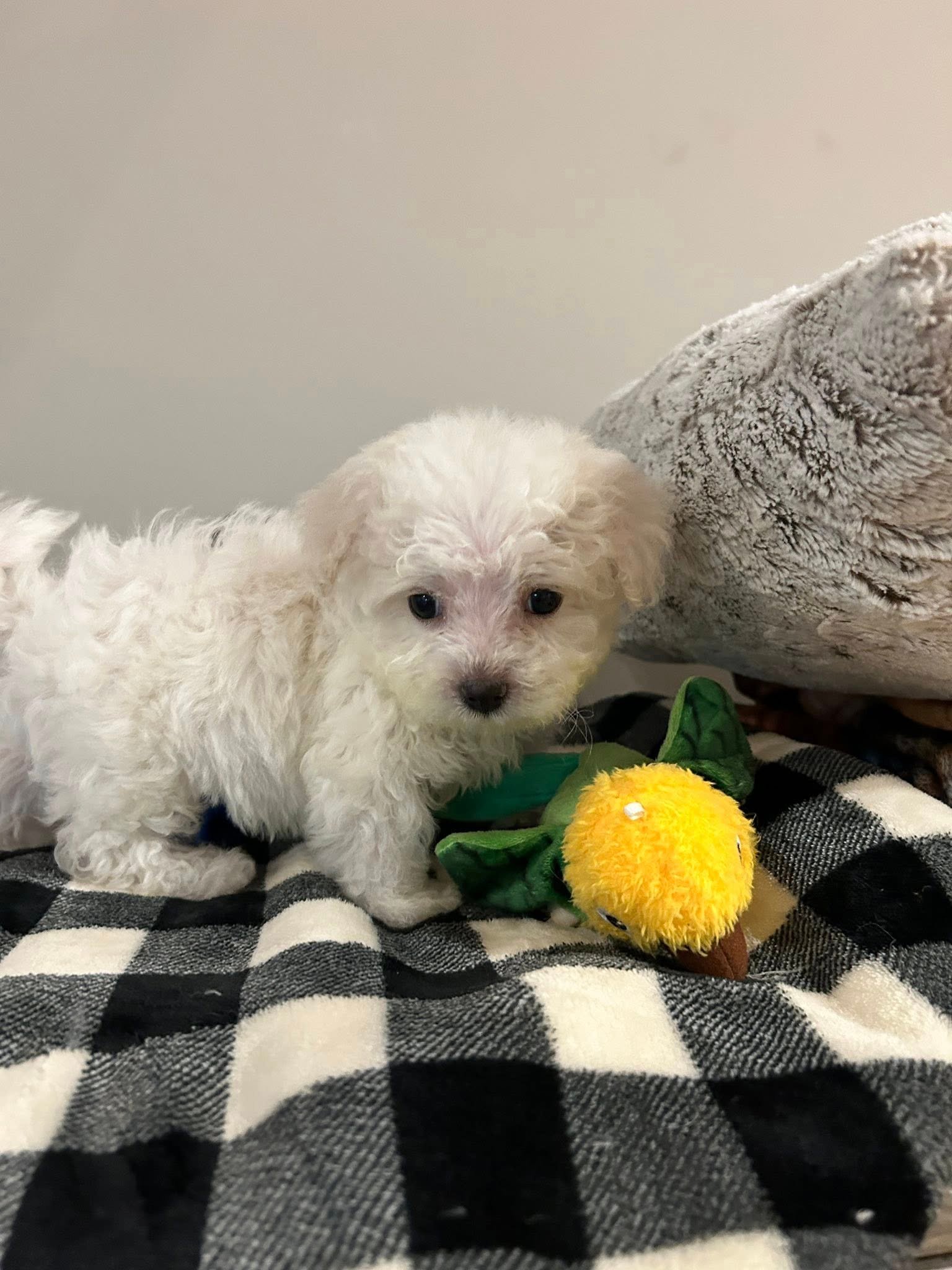 Bichon Frises are known for their friendly and cheerful demeanor. They are highly trainable and thrive on companionship, making them ideal pets for various households. Molly’s hypoallergenic coat is perfect for allergy sufferers, as she sheds minimally and requires regular grooming to keep her looking fabulous.